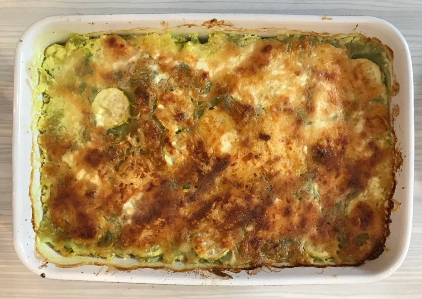 - Dans un plat à gratin, disposer une couche de courgettes, une couche de ravioles, une couche de fromage râpé, un peu de sel, poivre et muscade. Recommencer jusqu'à ne plus avoir d'ingrédients et en terminant par les courgettes. Verser la crème