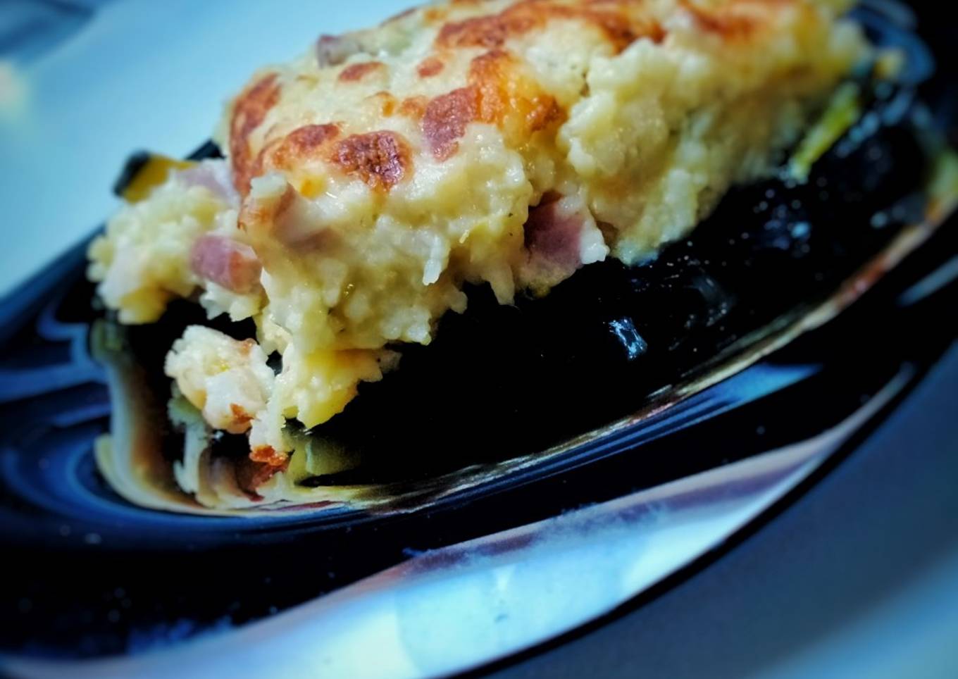 Risotto gratiné, aux courgettes, scamorza, jambon fumé , qui change des risotto habituels.