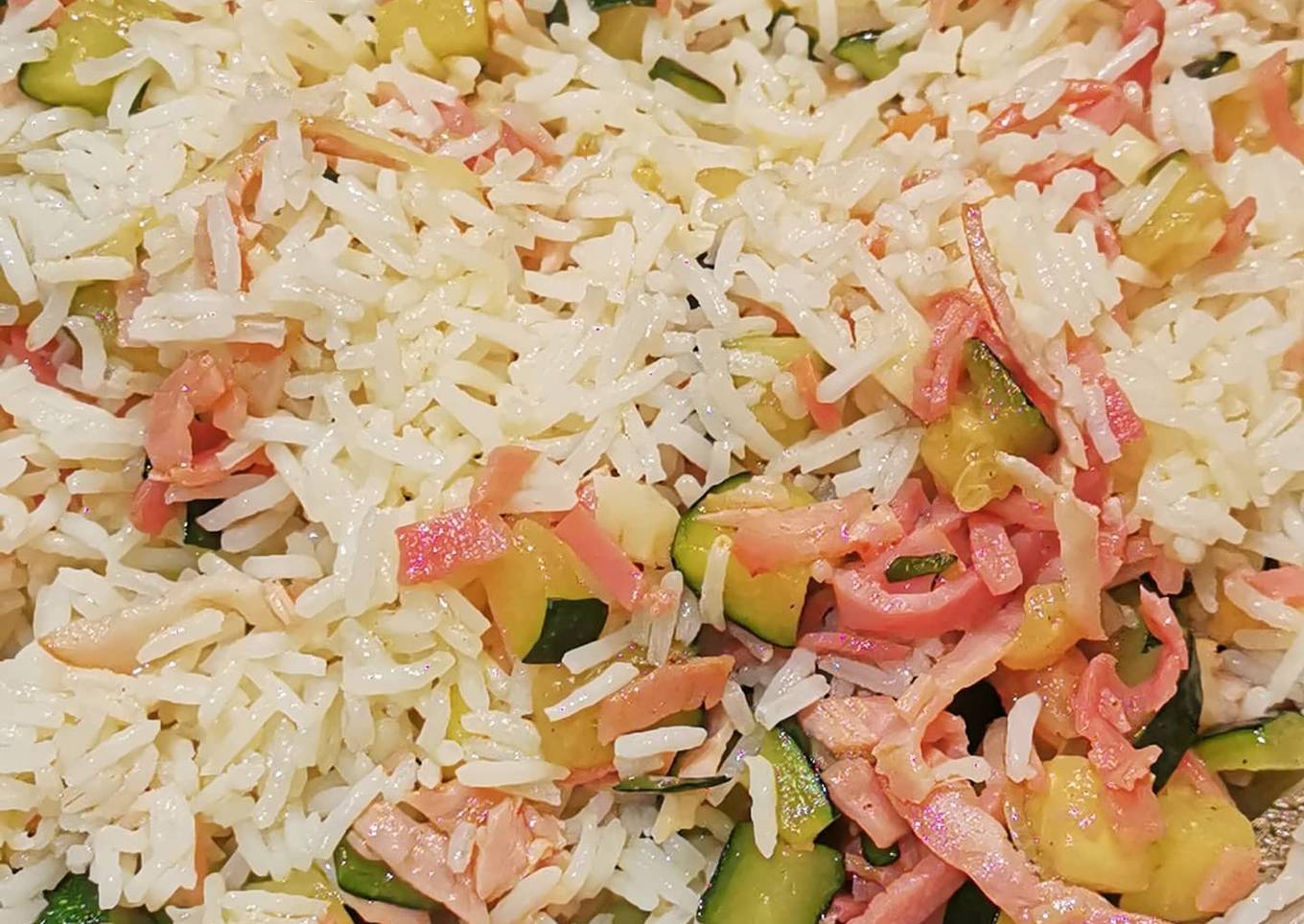 Riz sauté aux courgettes et jambon