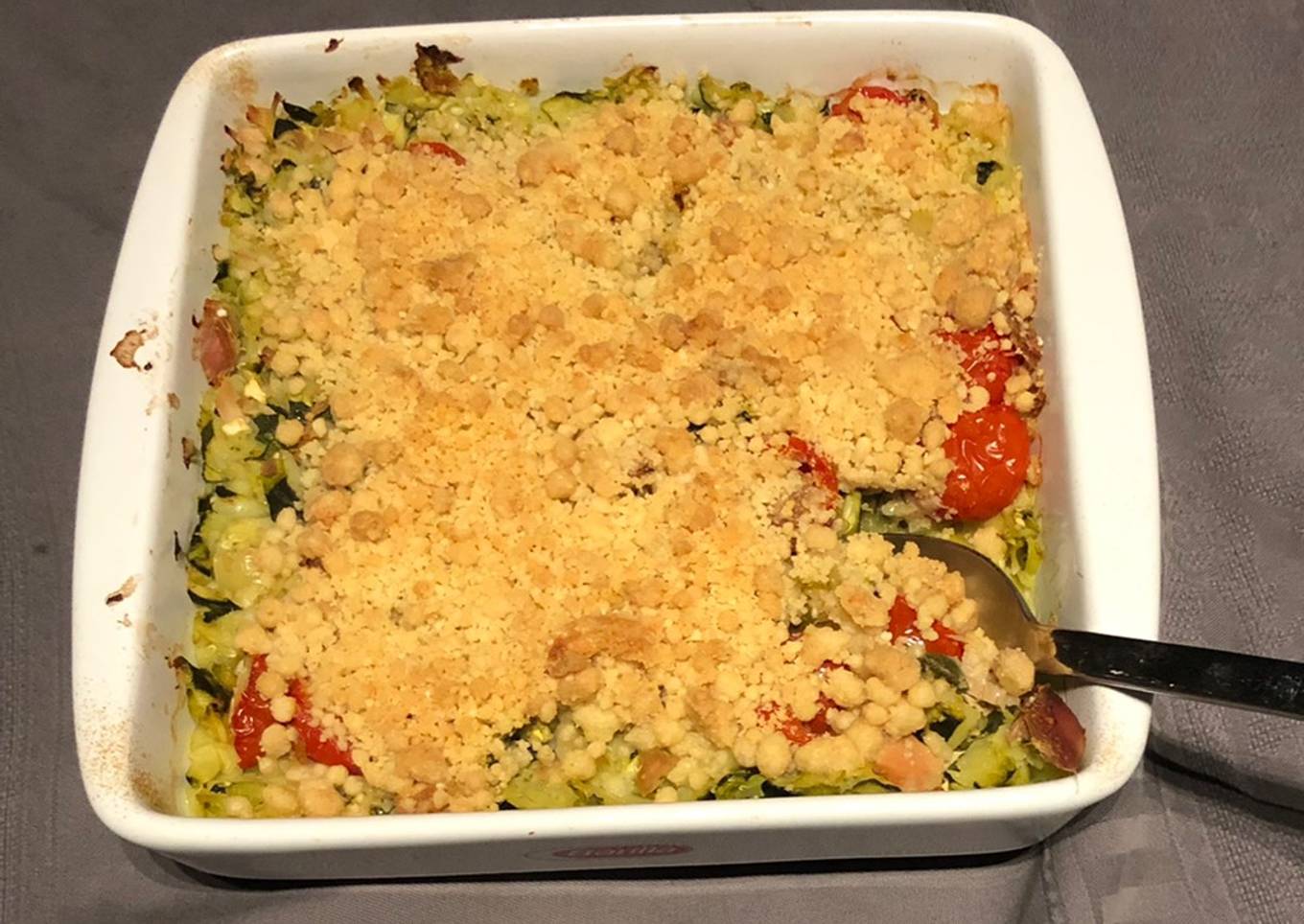 Crumble courgettes, thon & tomates cerises