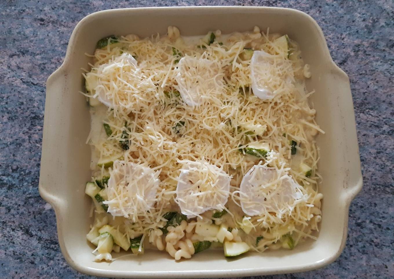 Gratin de coquillettes a la courgette et au chèvre