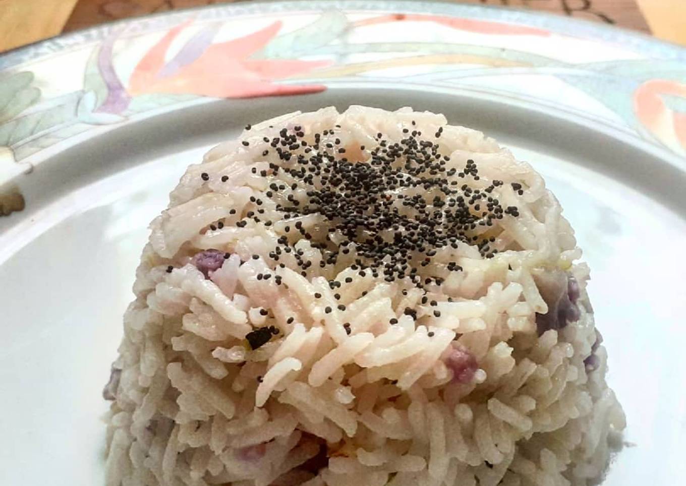 - Ensuite le cuisiner avec un couvercle hermétique au feu vivant jusqu'à que l'eau commence à bouillir et après baisser la flamme au minimum et continuer la cuisson jusqu'à que l'eau soit complètement évaporée et laisser reposer entre dix et douze minutes. Ensuite à l'aide d'une cuillère en bois le placer dans un petit bol et le renverser dans l'assiett. Une petite couche des graines de pavot et un filet d'huile extra vierge d'olive vont compléter l'assiette.