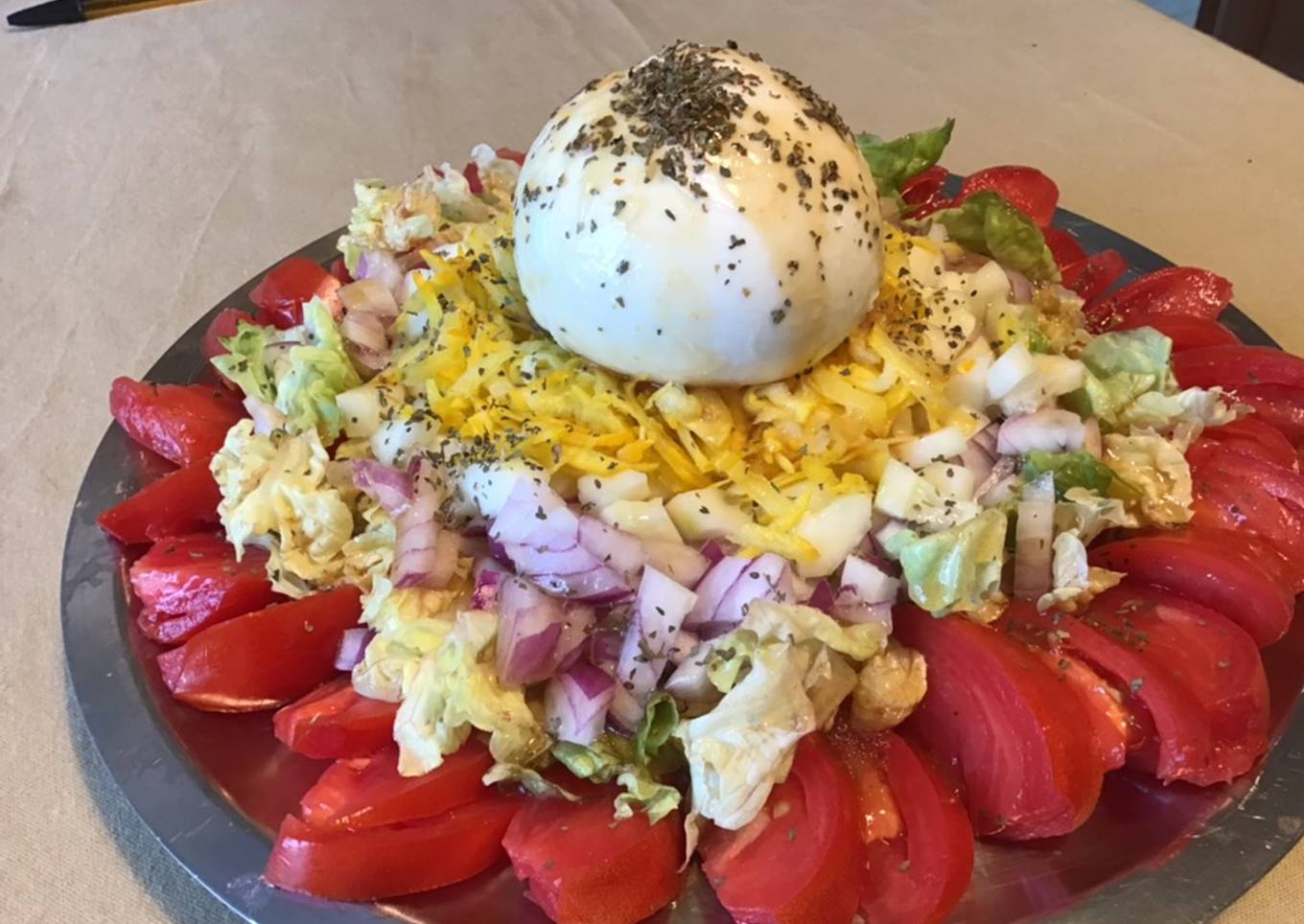 Salade tomates,courgette,concombre et feuille de chêne à la burrata di buffala