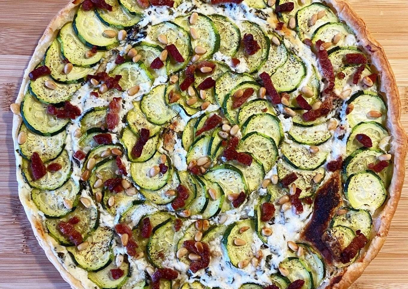 J'adore les tartes! Aussi bien en version salée que sucrée, light ou gourmande, été ou hiver... Déclinable à l'infini et rapide à faire, je ne m'en lasse pas. Je vous propose ici une association que j'apprécie tout particulièrement (et de saison!) : la courgette et le chèvre. Bon appétit!