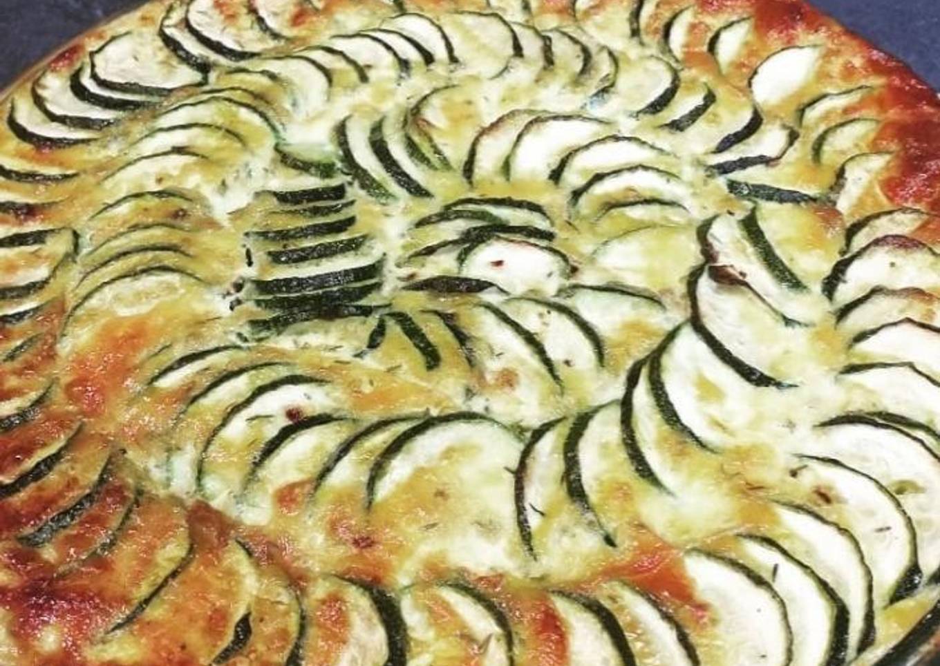 Cette année mon jardin fut tellement généreux en fruits et légumes que nous avons eu la chance ma famille et moi d'obtenir énormément de courgettes. Pour pouvoir faire un plat équilibré et faible en calories pour les grandes chaleurs j'ai eu l'idée de faire une tarte sans pâte. Vive les courgettes !!